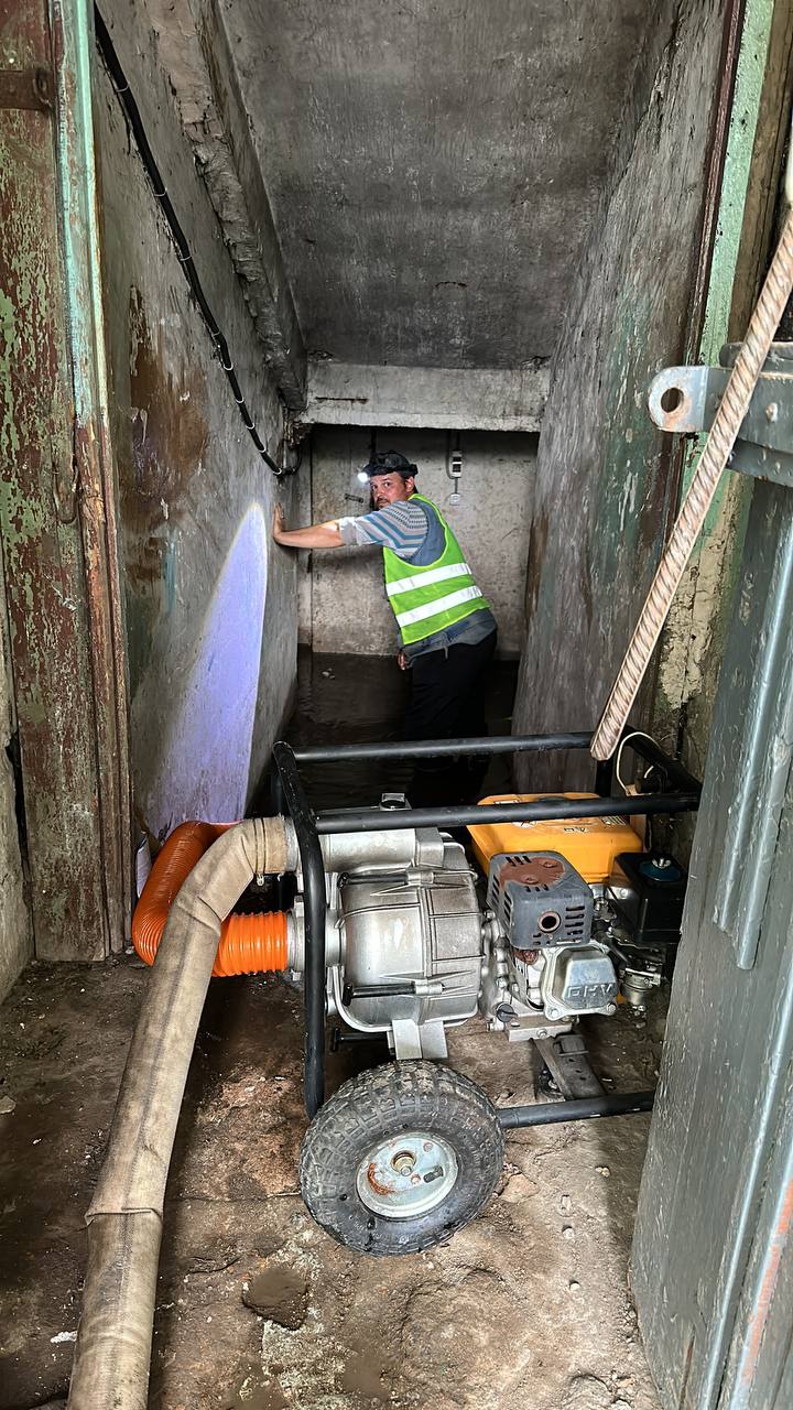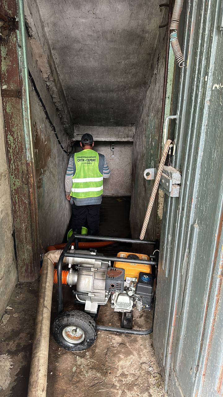 В указанных домах серьезно пострадали подвальные помещения. Первая задача, которую мы решили самым срочным образом – это отключение света и откачивание подвальных стоков мотопомпами. Скорость была очень важна, так как, согласно закона мы не имеем права оставлять дом без электричества более, чем на четыре часа за одно отключение. Когда ситуация в моменте стала критической, нам на помощь пришли наши уважаемые коллеги из ресурсо-снабжающих организаций МУП «Уссурийск-Водоканал», которые экстренно устранили засоры на сетях канализации и сотрудники АО «Уссурийск-Электросеть», которые помогли обеспечить безопасное отключение электрических вводно-распределительных устройств.