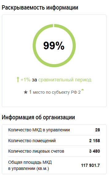 В январе текущего года в рамках публичного рейтинга официального портала «Государственная информационная система жилищно-коммунального хозяйства» наша управляющая компания стала заняла 1 место по субъекту РФ по раскрываемости информации.